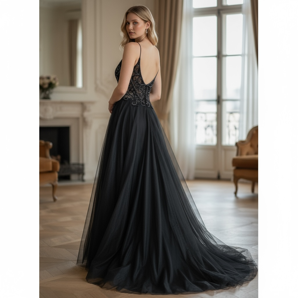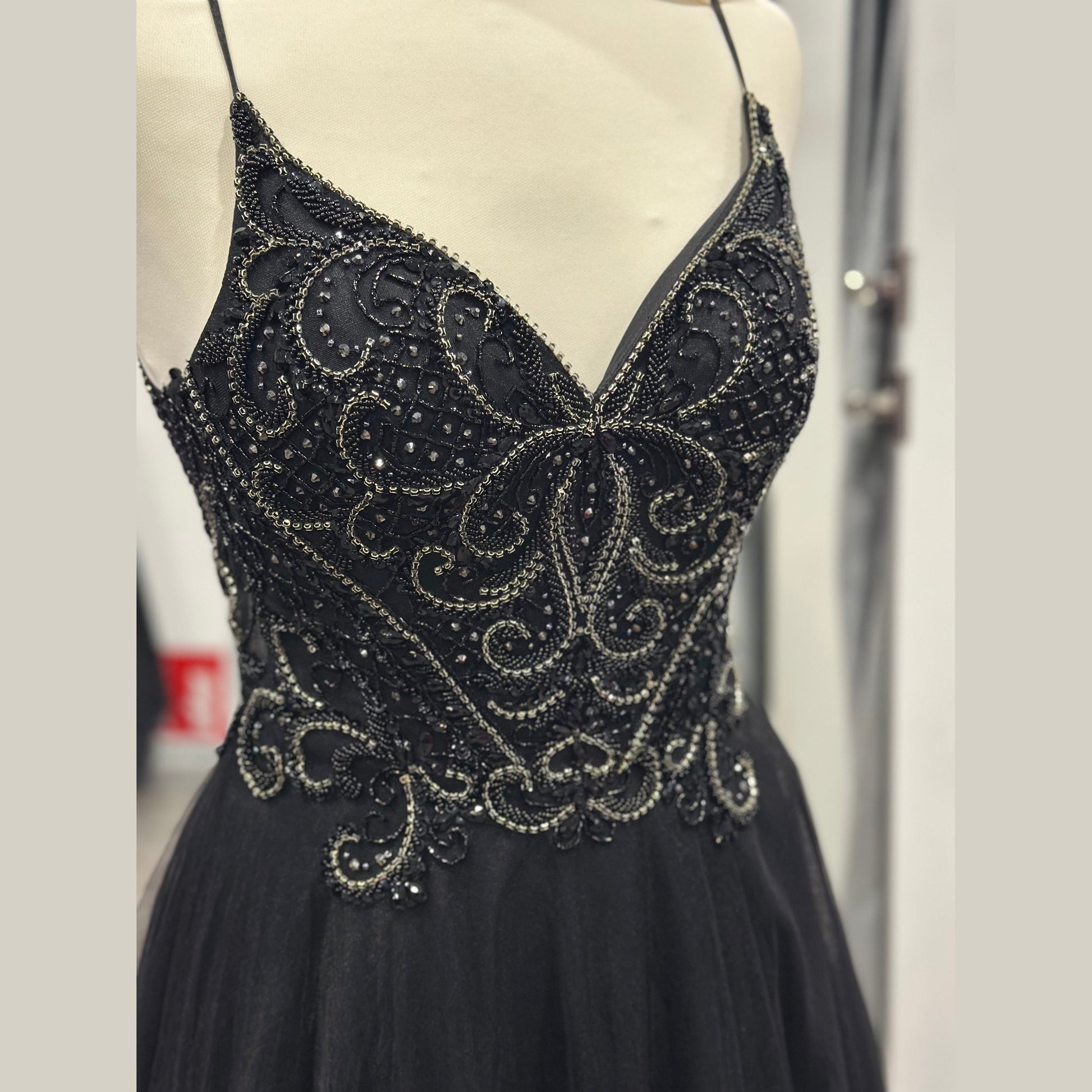 Romanticissimo questo abito con gonna ampia multristrato di un tulle leggero ed impalpabile. La parte superiore ha un corpino interamente ricamato a mano!