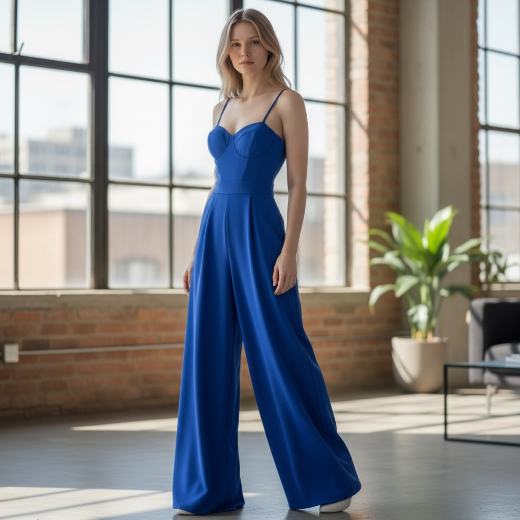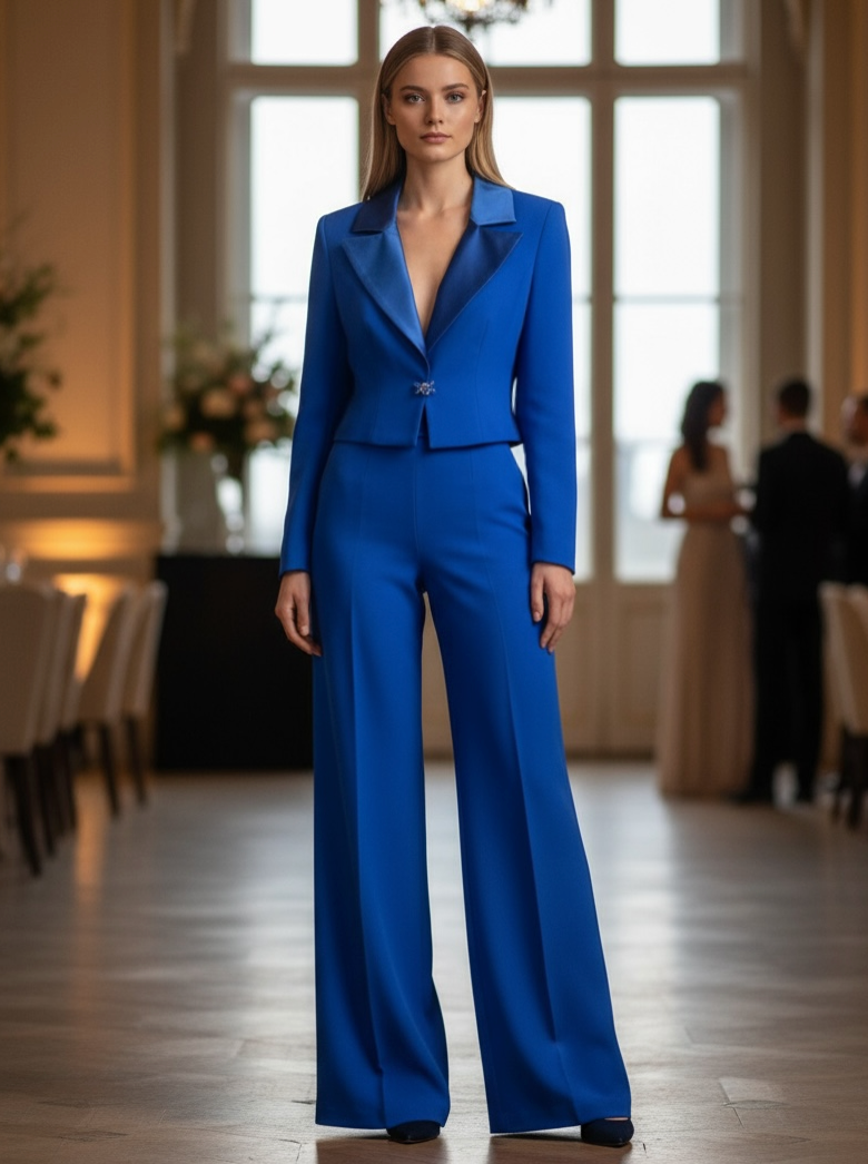 molto particolare questa tuta o jumpsuit dalla colorazione blu elettrico! Il corpino ha una coppa a guêpière e sul retro è facile regolare la misura con la stringa.. la vestibilità del tessuto cadì stretch è ottima. La giacca corta con collo a lancia in raso rende il tutto incantevole. Perfetta per qualsiasi tipo di evento o cerimonia!